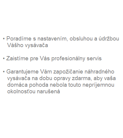 - Ak oprava trvá dlhšie ako 7 dní, servis vám ponúkne službu zapožičania náhradného vysávača.